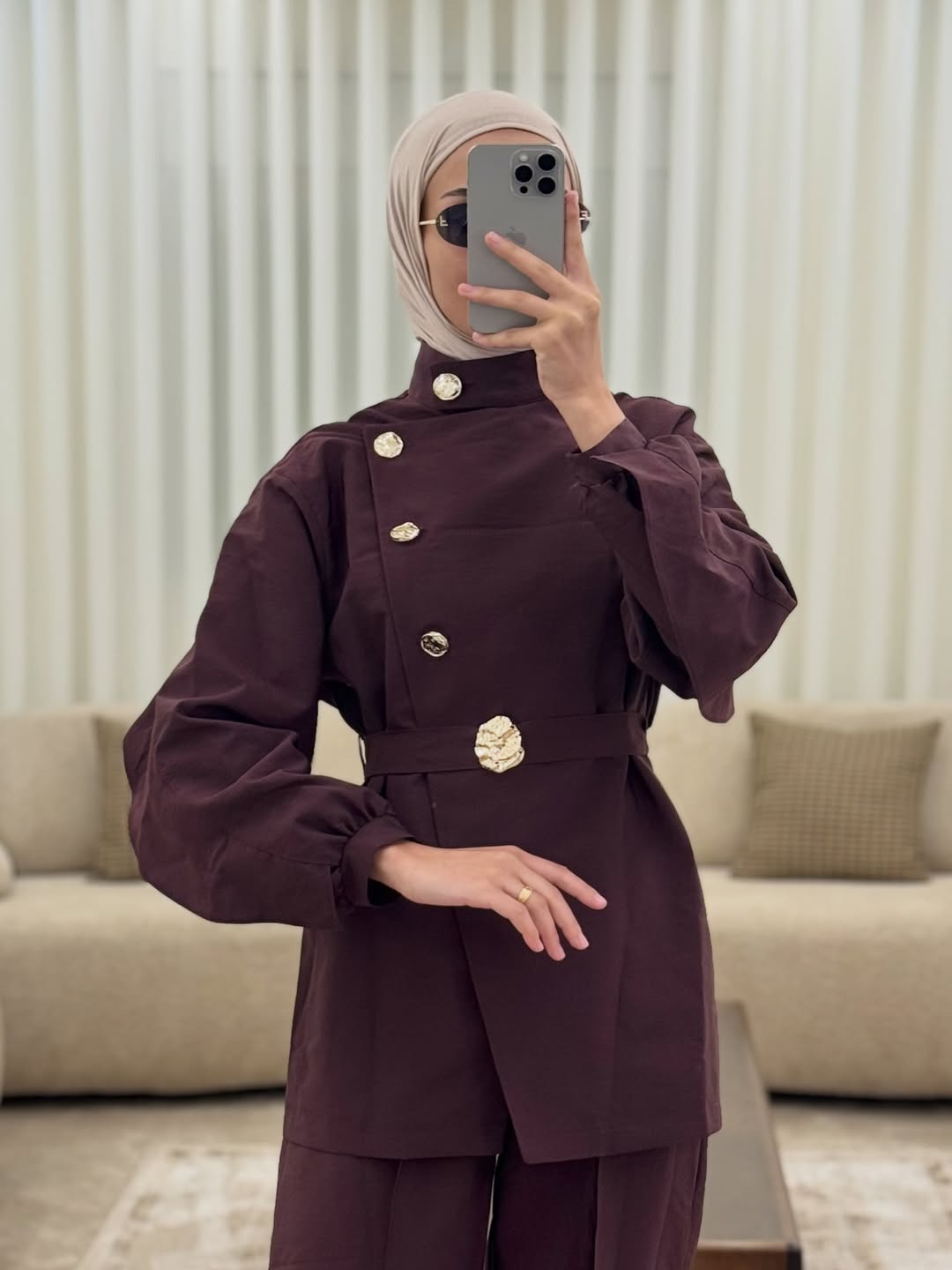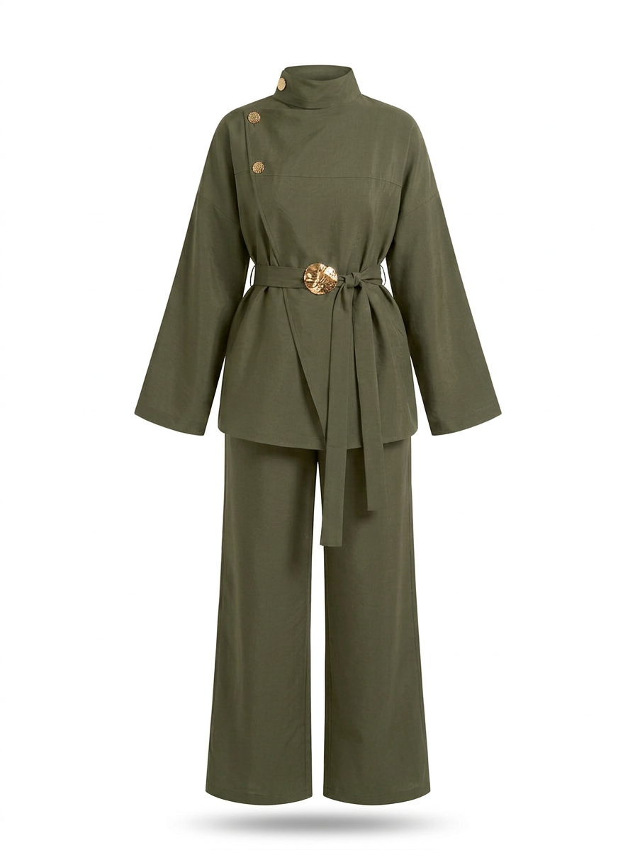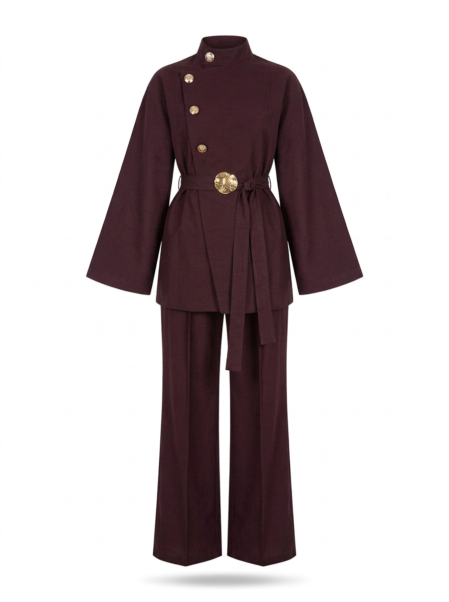 Short coat with a high collar and long sleeves. Featuring side pockets, a tonal lining and a front fastening with lined metal hooks.